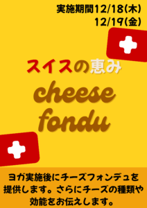 みんさまこんにちは! 毎月通所リハビリではヨガ実施時に、各国の代表的な食材を管理栄養士が紹介しています。 ヨガによる健康効果と食材による健康効果を掛け合わせたイベントとなっております。 今月はスイス原産であるチーズフォンデュを紹介しま...