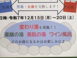 みなさまこんにちは。 今月はイベントが盛りだくさんです☆ 今後のイベントの一部をご紹介☆ 今週は変わり湯を開催! そして来週は大感謝フェアです!! ぜひご期待ください☆ 次回のブログもお楽しみに☆