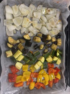 野菜をオーブンで焼いてから、トマトソースで合わせるため
