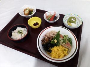 8/13(水)には、鯛そうめん冬瓜の冷鉢・デザートは抹茶のミニロールケーキ