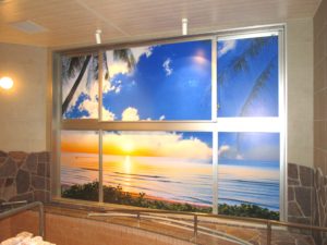 自然や風景を演出する壁面の絵や