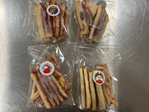 切り落とした端生地は、ねじねじするとこれも可愛いスティックパイになります