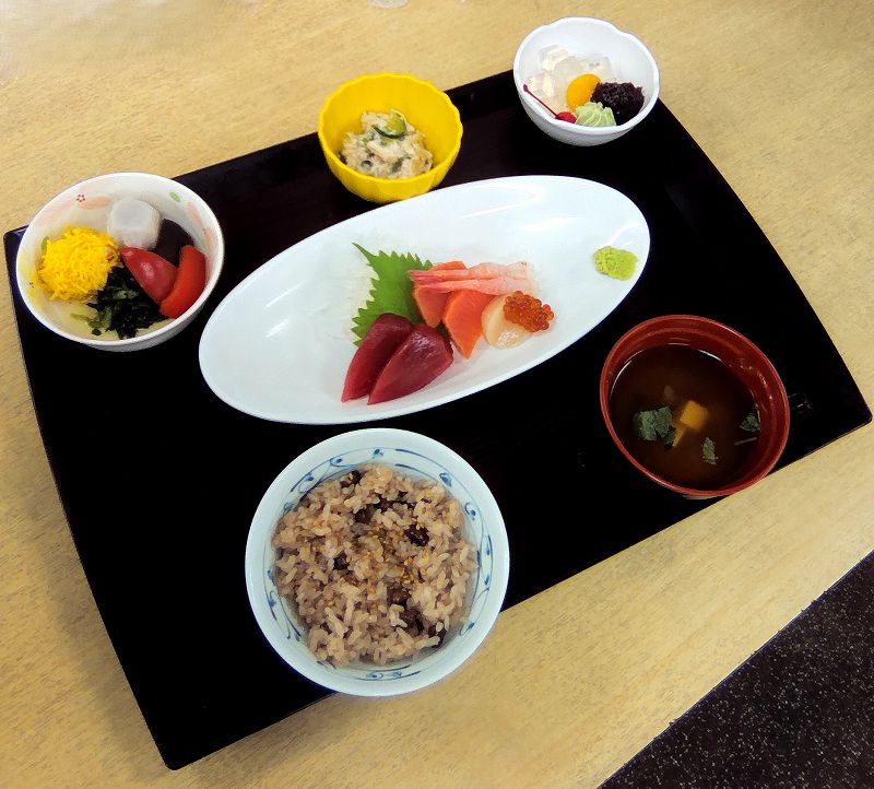 9/1がオープン記念日である、 ケアハウス・25周年記念棟・妻沼デイサービスで お祝い御膳を提供しました。 ★赤飯 ★赤だしの味噌汁 ★刺身の盛り合わせ ★錦糸卵のエビしんじょう寄せ ★蒸し鶏とみょうがの和え物...