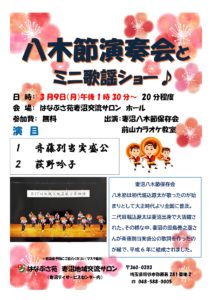 妻沼交流サロン 3/9 八木節演奏会とミニ歌謡ショー