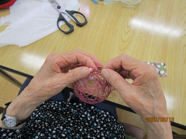 皆様こんにちは。 今月の手工芸は手作り風鈴です。 【作り方】 ボンドに浸したレース糸を水風船🎈にぐるぐる巻き。1日置いたらご覧の通り、風鈴本体の出来上がりです。 お...